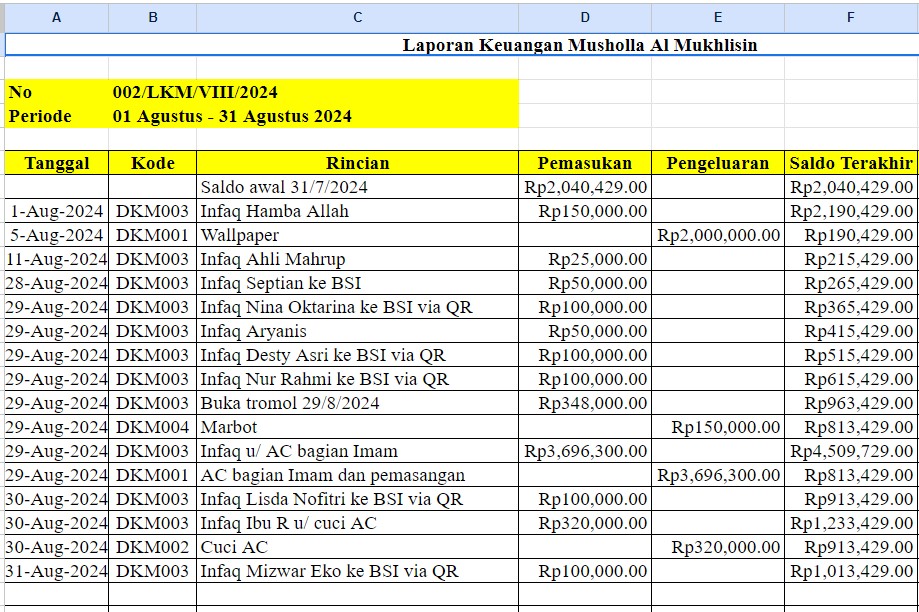 laporan bulan Agustus akan terus update untuk pemasukan & pengeluaran, sampai akhir bulan