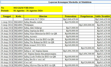 Agustus 2024 - Laporan Saldo Kas Masuk & Keluar