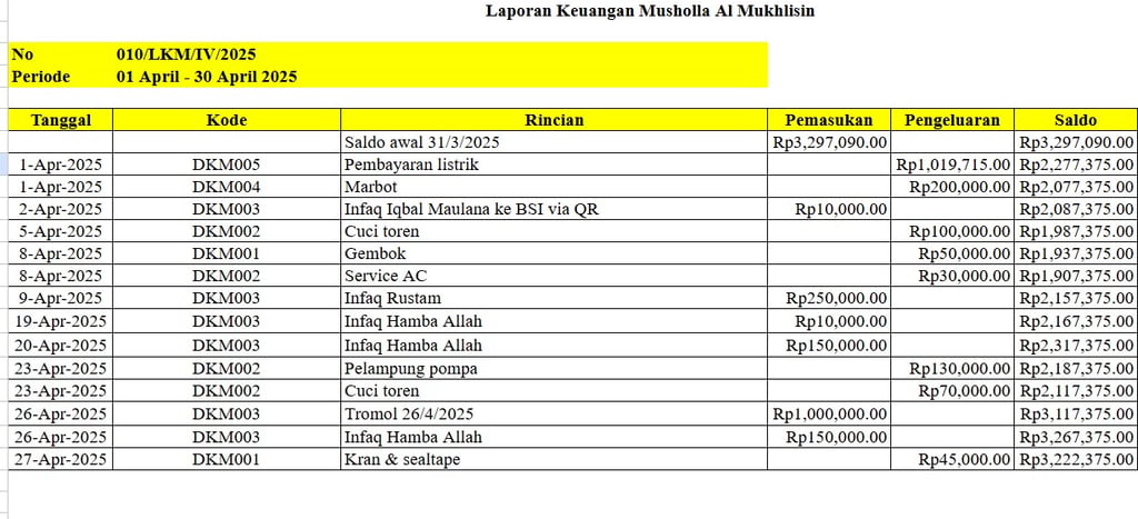 April 2025 - Laporan Saldo Kas Masuk & Keluar