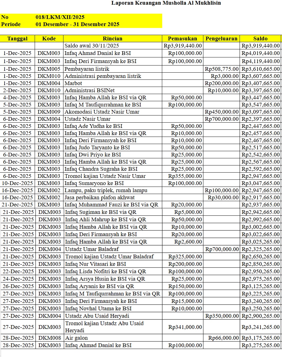 Desember 2025 - Laporan Saldo Kas Masuk & Keluar