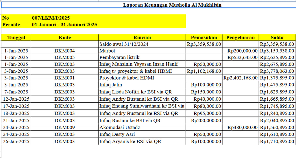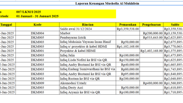 Jan 2025 - Laporan Saldo Kas Masuk & Keluar