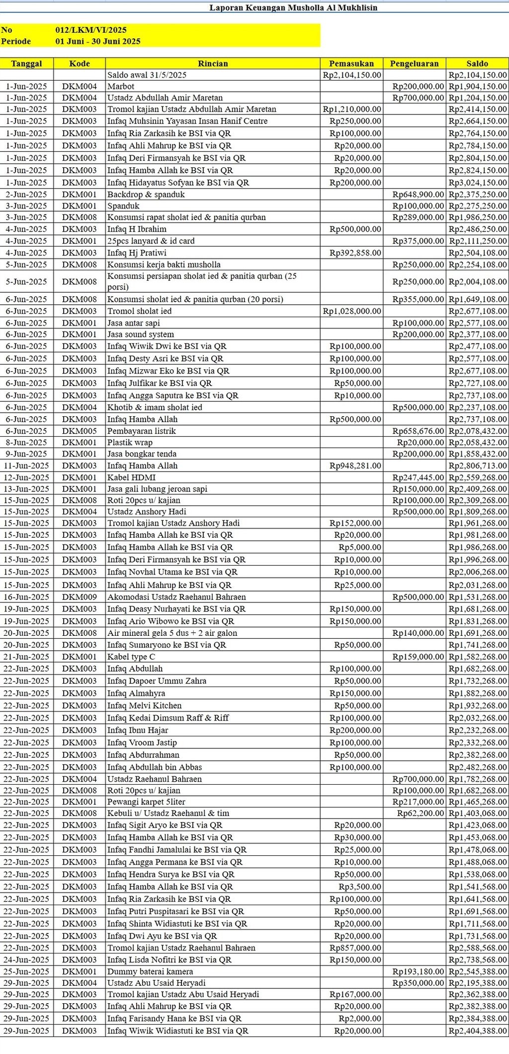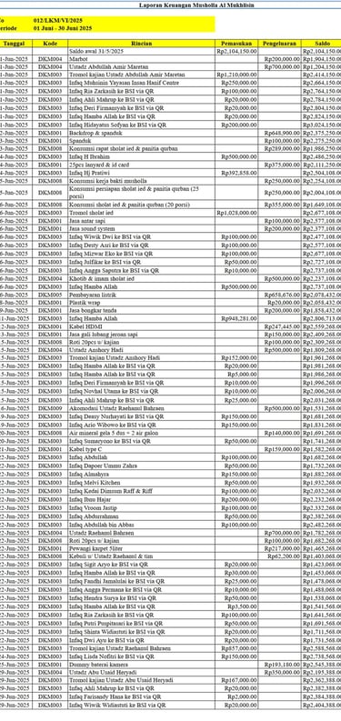 Juni 2025 - Laporan Saldo Kas Masuk & Keluar