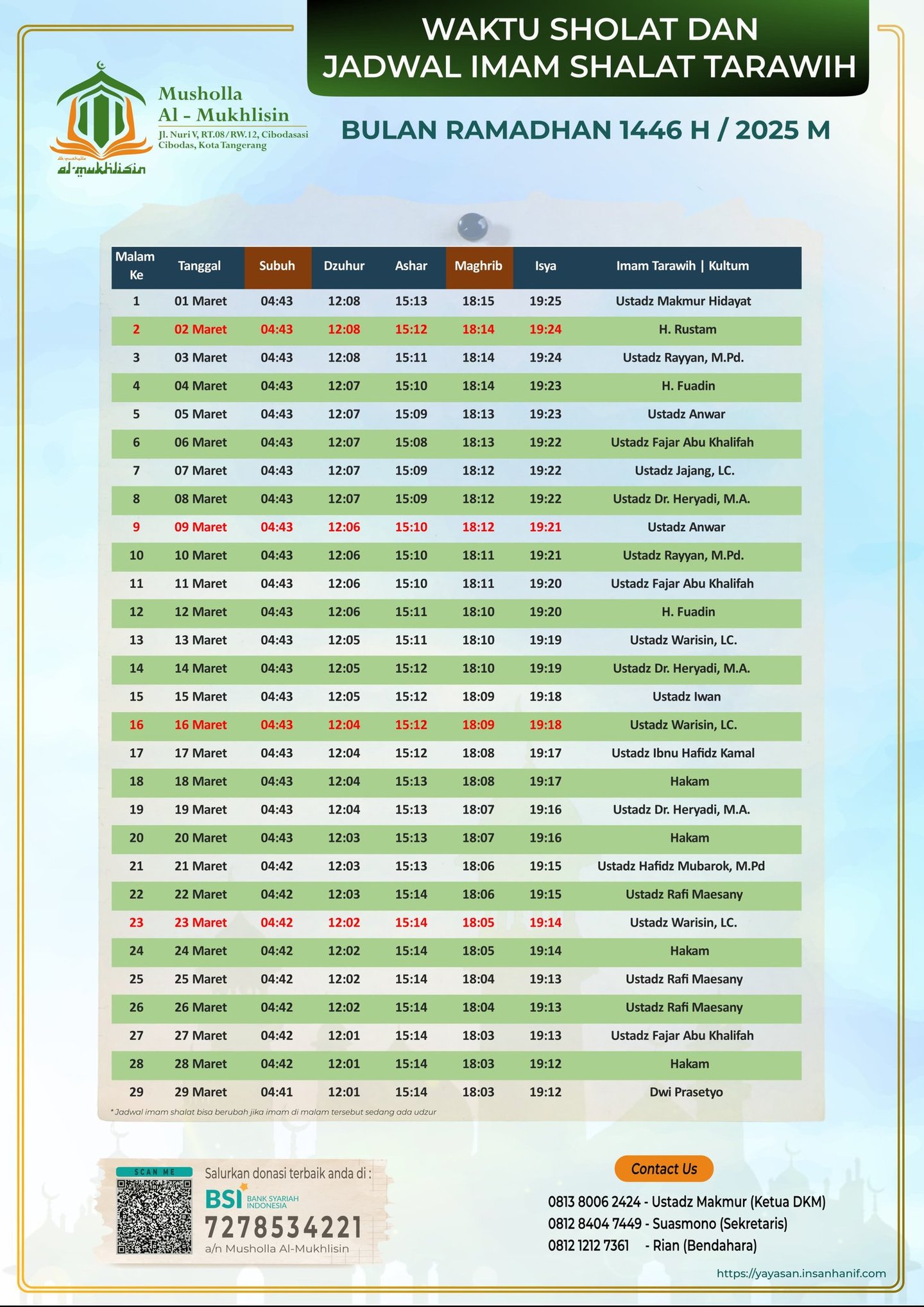 info kajian Musholla Al Mukhlisin ?