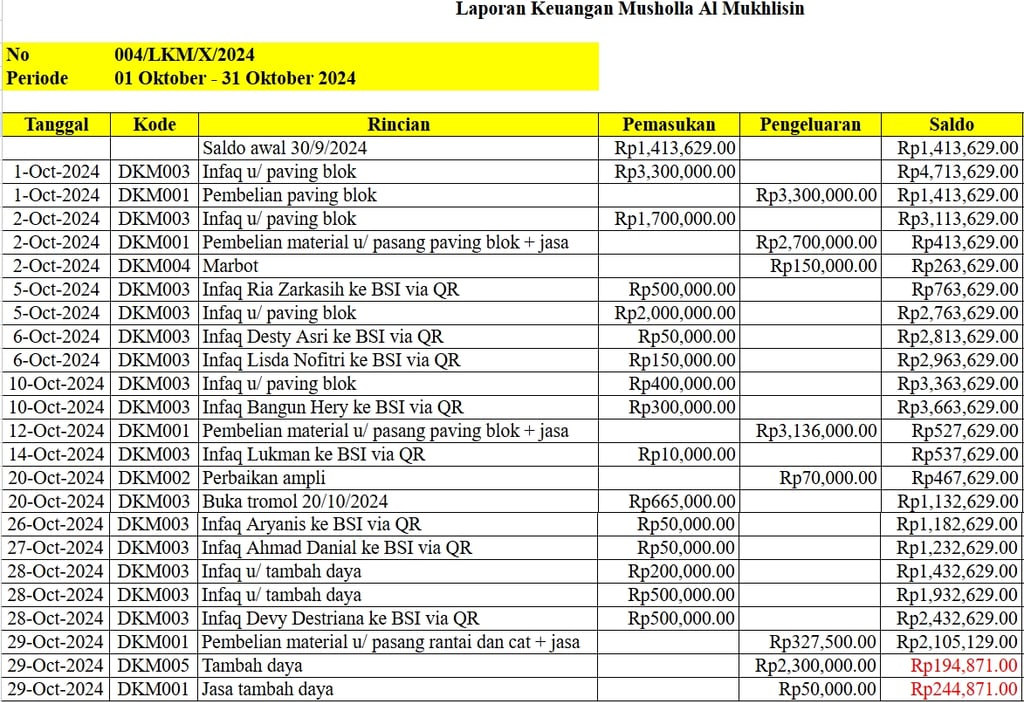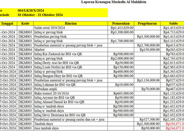 Oct 2024 - Laporan Saldo Kas Masuk & Keluar