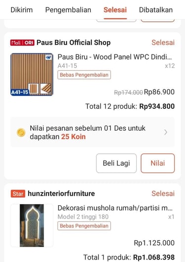 mihrab 934.800 + wood panel 12 lembar 1.068.398 = 2.003.198