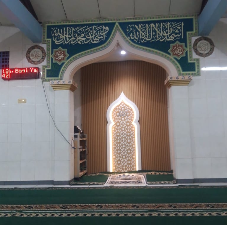 Pemasangan Wallpaper pada dinding & Mihrab (woodpanel),