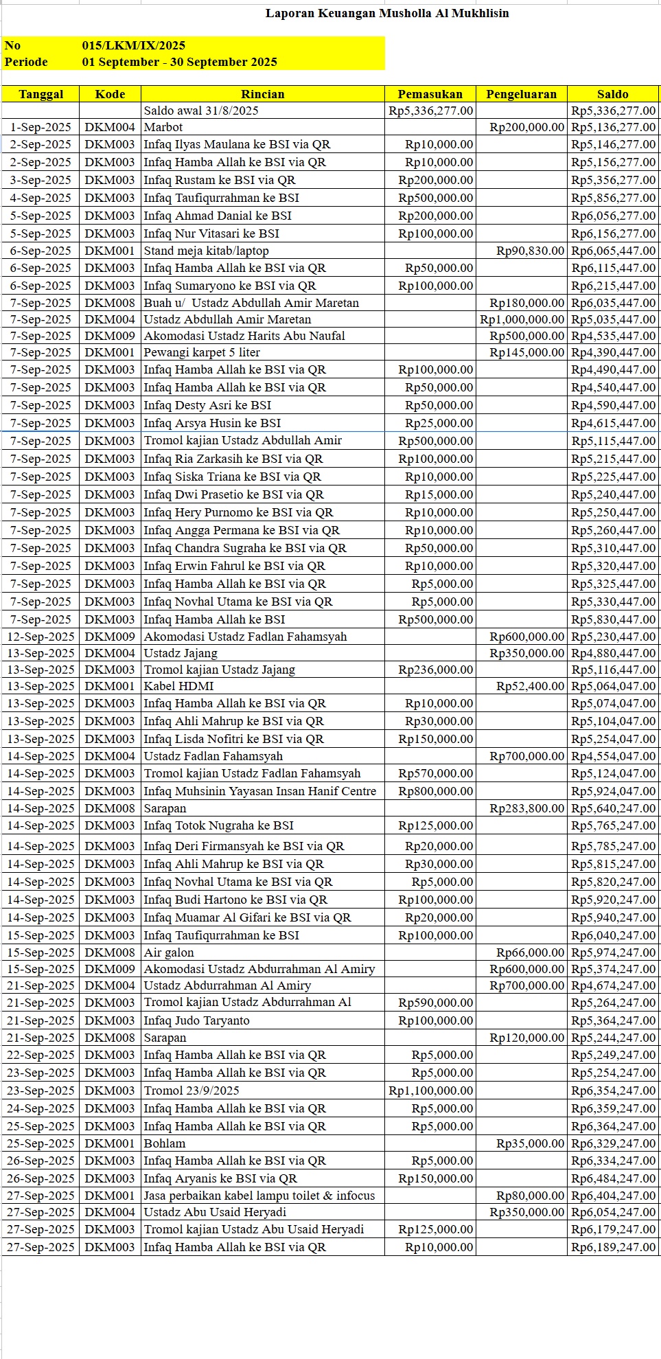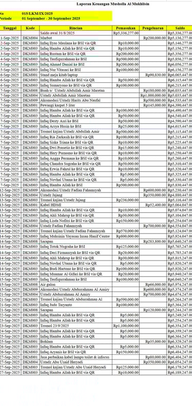 September 2025 - Laporan Saldo Kas Masuk & Keluar